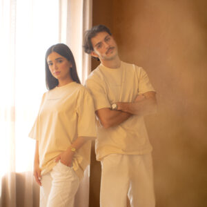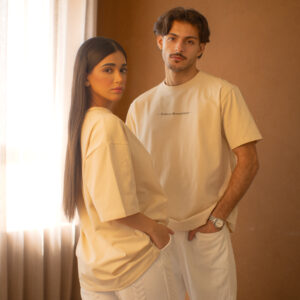 مجموعة الخريف: البيج تيشيرت مجموعة الخريف: البيج يجمع بين البساطة والهوية. مصنوع من قماش سباندكس بسُمك ‎200 GSM‎ ويأتي بقصّة